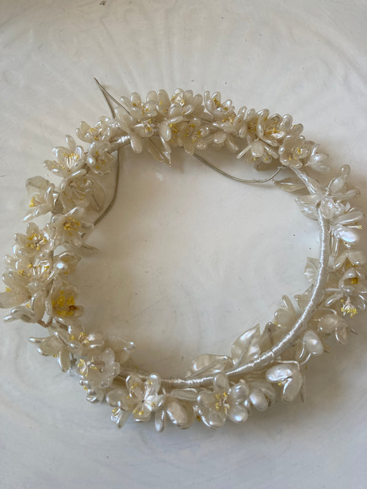 1920s Round Headdress with Wax Flowers, Pearls and Petals