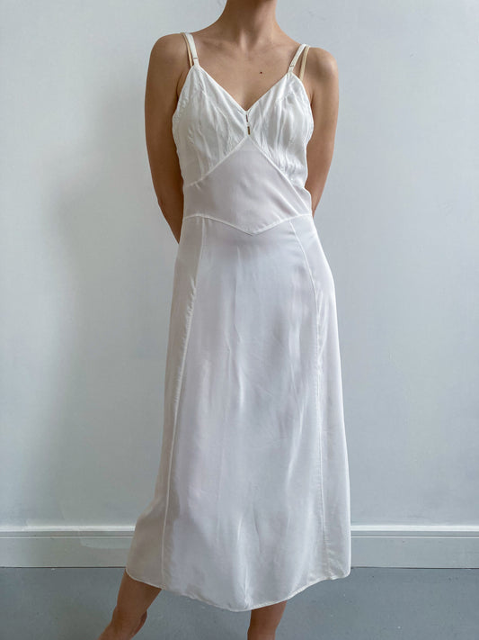 1940s White Slip with Delicate Embroidery & Spaghetti Straps XS/S