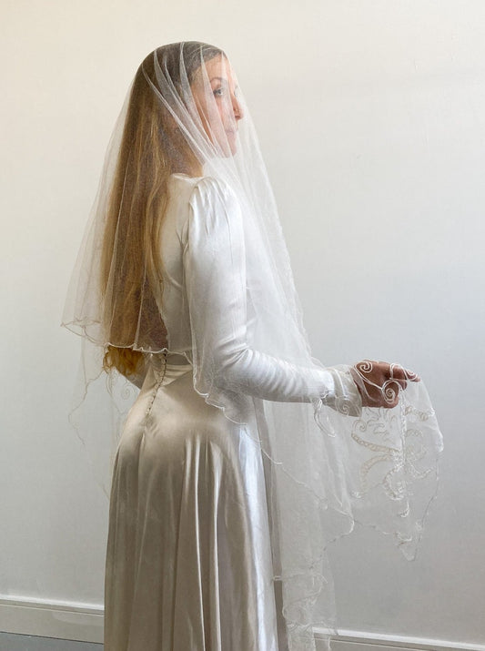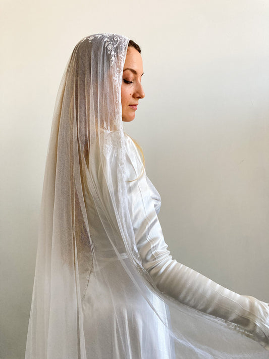 Antique Cathedral Tulle Veil with Fine Floral Edging