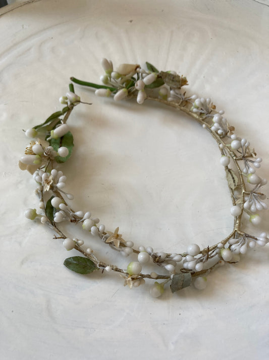 1920s Round Headdress with Wax Flowers, Pearls and Petals