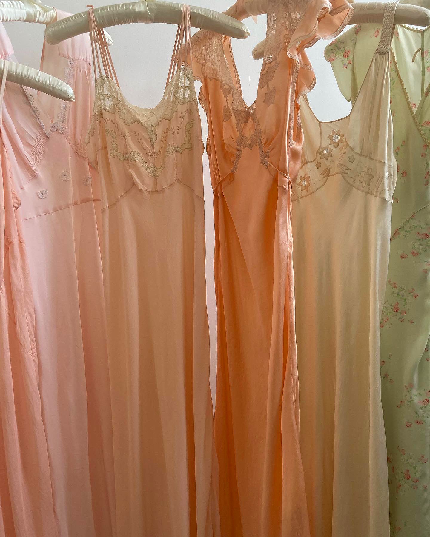 1930s Slip Gown In Pearl With Floral Lace Trims