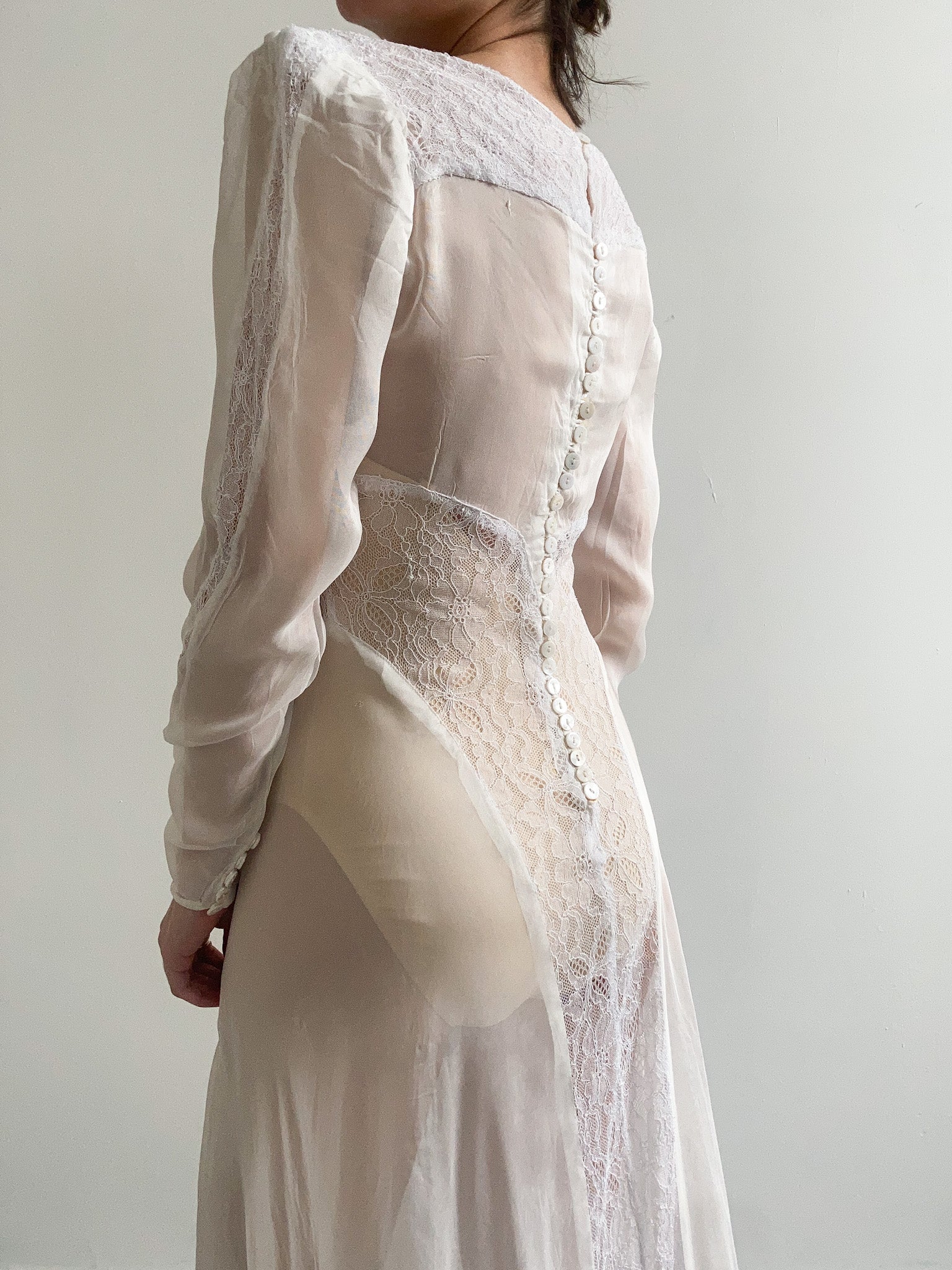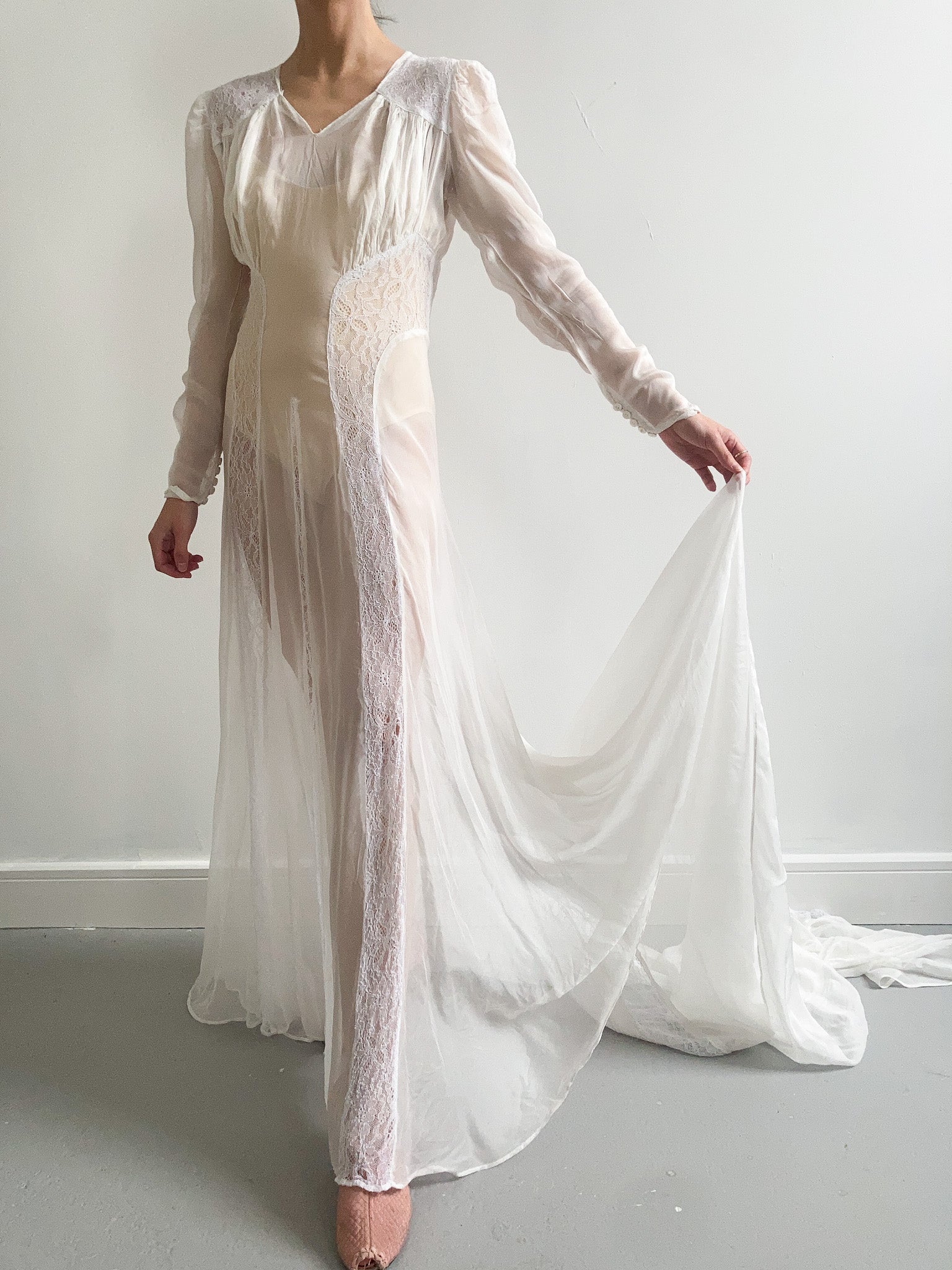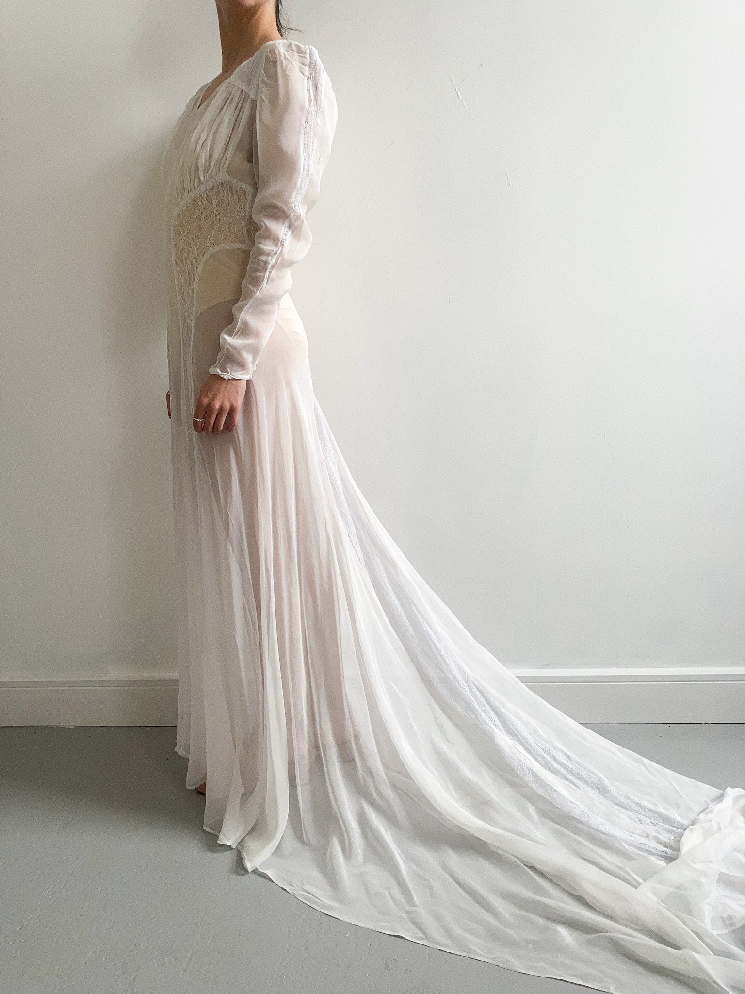 1940s Sheer Lace Wedding Gown with Train