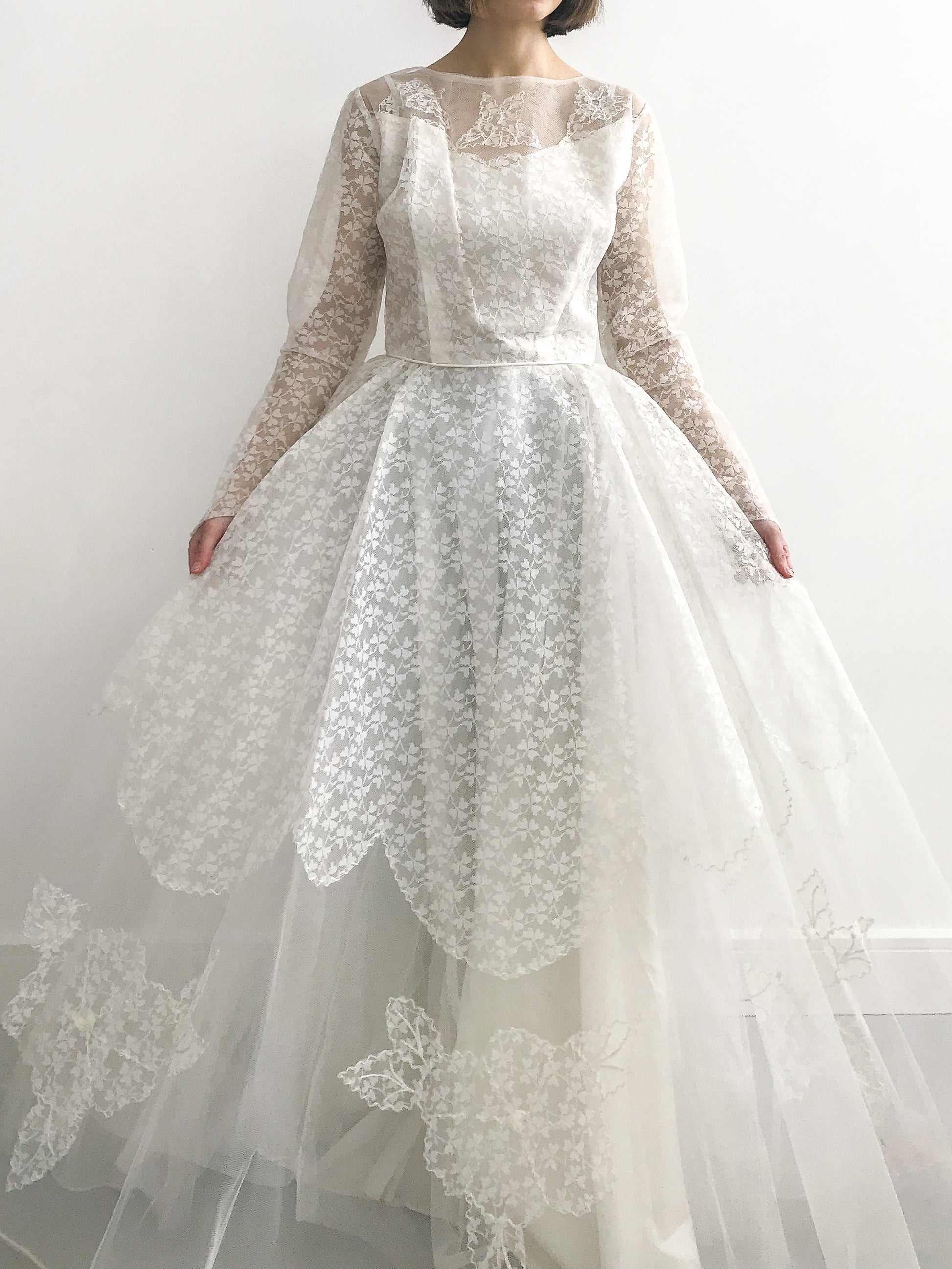 1950s Tulle Applique Wedding Dress
